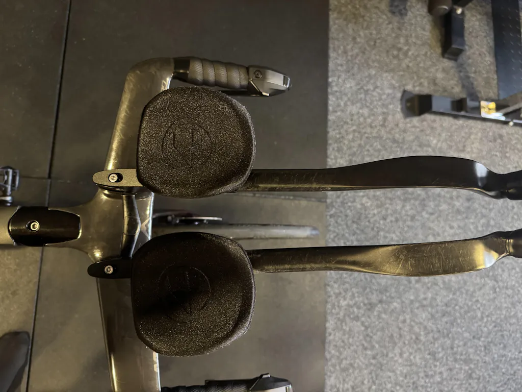 Universally-fitting Aerobar Adjustable Risers developed in collaboration with Cycling New Zealand in the build-up to the Paris Olympics. The adjustability helps the team dial in their position with micro adjustments to optimise the bike fit in relation to the UCI geometry rules.